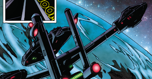 The Warriors blast away Penance's hull plates, escaping from the Hub in their Vipers (Battlestar Galactica: Starbuck 3).