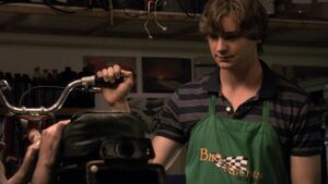 Bike Kitchen is a motorcycle and bicycle repair shop in Caprica City, Caprica circa 42YR. Employees like Keon Gatwick wear a green work apron with the shop's logo, with the slogan "Let us fix it."