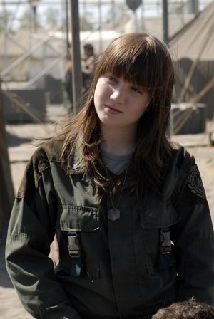 Lyman later cuts her bonds and allows her to escape from the detention group slated for execution in a remote location. Chief Tyrol, arriving with a resistance sniper team, pushes his running wife out of the resistance's line of fire as they destroy the Cylon Centurion firing squad. She and her son hide in the resistance's underground bunker (TRS: "Exodus, Part I").