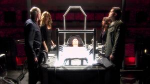 - A Cylon agent, probably the first copy of Aaron Doral encountered, installed a Cylon transponder at the base of the DRADIS console shortly before the Cylon attack (TRS: "Miniseries"). Dr. Baltar is aided by his virtual Number Six in identifying it to the CIC command staff. It is likely that the transponder is placed there to track Galactica should it escape the initial Cylon attack.