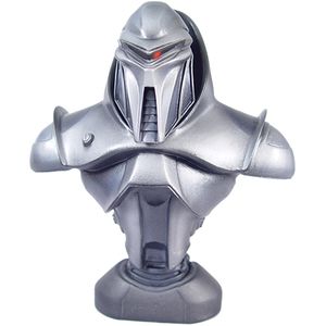 The statue is an accurate 7.5" tall replica of a Cylon Centurion, made of polyethlene resin. The bust has no arms and does not appear to have any other articulation.