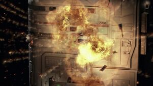The next act of sabotage takes place about the tylium refinery ship Daru Mozu, where Demand Peace members aboard the ship detonate a bomb close to its FTL drive.