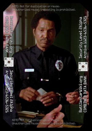 Dorbin gets blamed by James for pushing him into the holding tank, leaving him bemused (1980: "Galactica Discovers Earth, Part I").