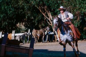 Starbuck encounters similar creatures in the form of unicorns on Attila, featuring a single protruding conical horn at the forehead (TOS: "The Young Lords").