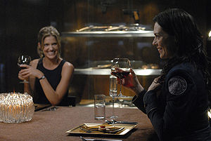 When Pegasus is scheduled for an extensive overhaul at the Scorpion Fleet Shipyards, Cain has regular meetings with Gina Inviere, a civilian contractor working for the Colonial Ministry of Defense, to work out the details of the retrofit. The two eventually become romantically involved.