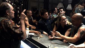 Lee "Apollo" Adama seems to be a good friend of Joe. The two might know each other from elsewhere in the Fleet, or Adama spent some time at the bar before introducing Tyrol to it.