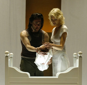 One-hundred fifty thousand years later, Messenger Six is with Messenger Baltar in New York City, looking over the shoulder of a man reading a National Geographic magazine article about the remains of Mitochondrial Eve—the current population's latest common evolutionary ancestor, Hera Agathon. The two discuss how all of this has happened before, and whether all of this will happen again. Messenger Six believes things will go differently this time. Messenger Baltar chides her when she refers to God, saying, "You know it doesn't like that name." The two then walk off into the teeming crowds of New York City (TRS: "Daybreak, Part II").
