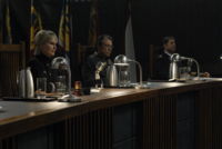 | Summary Baltar's trial commences, with the prosecution presenting evidence of treason committed on New Caprica amid controversial testimonies from Colonel Tigh and President Roslin. Quote