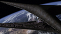 editShortly after, the baseship participates in an attack on the main Cylon Resurrection Hub, jumping to it after the ship's Hybrid is brought back online. It is successful in rescuing a Three before destroying the station (TRS: "Sine Qua Non" and "The Hub"). The baseship joins the Fleet as they make the jump to Earth shortly after the battle (TRS: "Revelations").