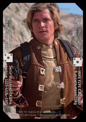 On the expedition to Paradeen, Starbuck helps Sarah Fowler and Michael reach their destination. Starbuck ends up lost in the catacombs of Paradeen city. After he is rescued he helps to overpower and capture the Eastern Alliance soldiers that had captured Sarah (TOS: "Greetings From Earth").