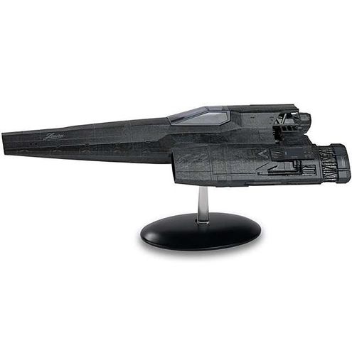 This Battlestar Galactica Blackbird ship is brought to life with heavyweight die-cast metal and high-quality ABS materials. It captures the Viper-shape of the ship in a sleek black colour and little details, such as President Laura's name painted on the fuselage. Eaglemoss has worked closely with members of Galactica VFX team to ensure that the model is as accurate as possible.