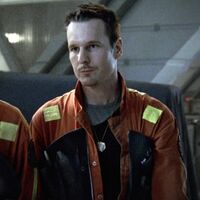 Prosna is part of a damage control team when the port flight pod is struck by a nuclear missile in the battlestar's first Cylon sortie in over 40 years. Prosna calls for help to Tyrol, who manages to get to CIC's damage control station. Unfortunately, the fires are advancing too fast, and Galactica's water mains are offline, leaving the D.C. parties to fight the fires with hand-held gear. Worse, the fires are coming too close to fuel lines for the battlestar; if the fire reaches them, the ship could be lost. Colonel Saul Tigh directs the venting of the specific frames in the port flight pod to space to quickly extinguish the fires. Tyrol manages to get a warning message to the D.C. party and Prosna, who warns as many people as he can that the compartment is about to be vented.
