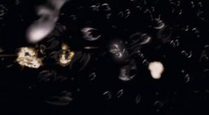Powered down Raider fleet being massacred by Galactica's Vipers