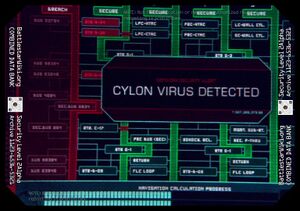 The virus infiltration tactic was used greatly in the first Cylon War. In response, the Colonials began using simpler technologies that were impossible to reprogram or shut down.[1] The first battlestars, to which Galactica belongs to, used computers but didn't network them or tie them to external sensors or communications, preventing a virus from entering ship's systems and minimizing damage to other systems in the event of an infection.[2]